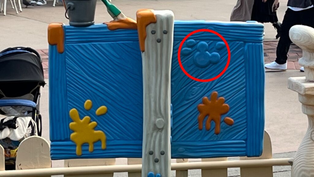 そして、その看板をよーく見てみると、ご覧のように1つだけペイントの形がミッキーになっているのです。